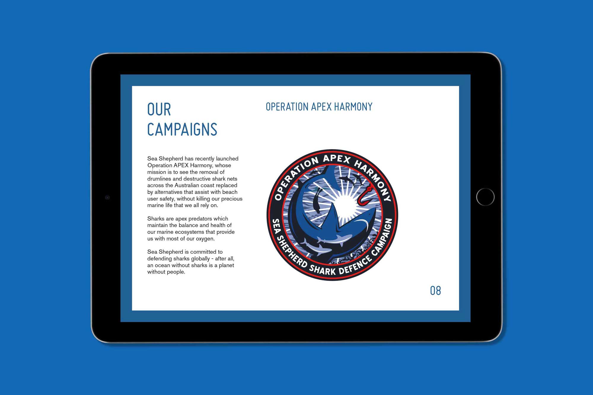 Sea Shepherd Australia wanted to expand beyond its activist base to secure corporate funding for ongoing direct-action missions. We developed a digital corporate partnership platform that elevated its DIY activist aesthetic into professional, investment-ready communications without losing urgency or edge. A modular digital design system showcased striking field photography, frontline conservation stories, and the tangible outcomes of corporate support, building trust and alignment with Sea Shepherd’s bold conservation efforts.